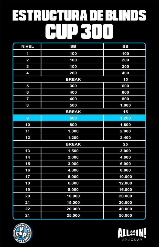 ESTRUCTURA DE BLINDS DEL CUP 300 – USD 10.000 GTD