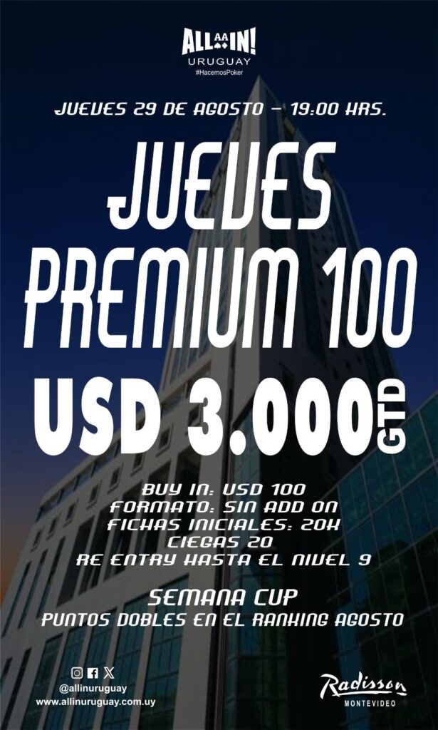 BUY IN: USD 150 – FORMATO: SIN ADD ON