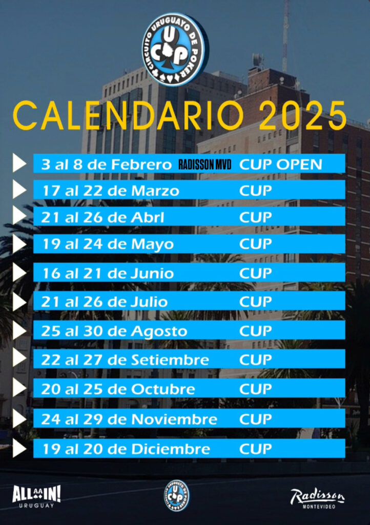 El CIRCUITO URUGUAYO DE POKER YA FIJO SUS 11 FECHAS 2025 PARA LO QUE SERÁ UNA TEMPORADA INCREIBLE.