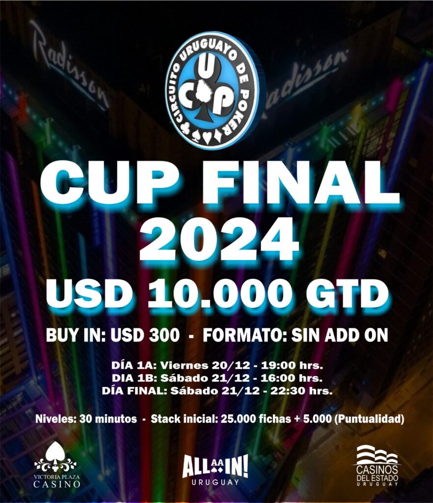 ¡EL VIERNES Y SABADO EN RADISSON MONTEVIDEO SE JUEGA EL CUP 300 FINAL 10K GTD QUE CIERRA EL 2024!