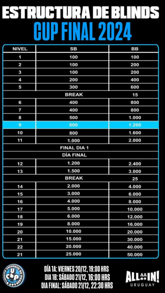 BUY IN: USD 300 – FORMATO: SIN ADD ON – NIVELES: 30 MINUTOS – POZO GARANTIZADO: USD 10.000