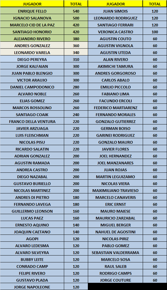 IMPORTANTE: Recuerden que si alguno de estos 5 jugadores repiten clasificación en los próximos meses obtendrán una estrella que podrán utilizar como un Stack inicial extra o como Re Entry en la GRAN FINAL del semestre por 1 Auto 0KM.