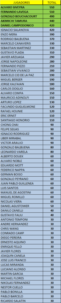 JUGADORES CLASIFICADOS HASTA AHORA A LA GRAN FINAL DE NOVIEMBRE POR 1 AUTO 0KM.