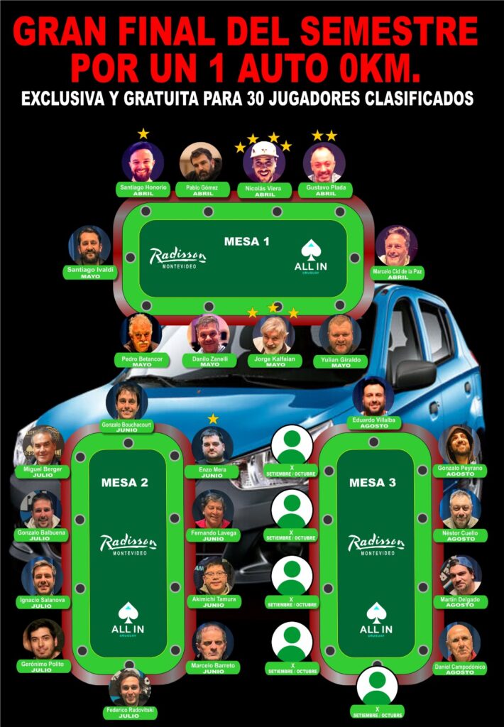 JUGADORES CLASIFICADOS HASTA AHORA A LA GRAN FINAL DE NOVIEMBRE POR 1 AUTO 0KM.