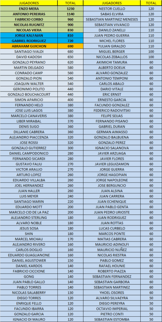 Aun queda mucha tela por cortar, quedan muchos eventos en OCTUBRE por jugar y cada punto cuenta. Setiembre/Octubre clasificaran a los ULTIMOS 5 JUGADORES que completaran la nómina de 30 que jugaran la GRAN FINAL exclusiva y gratuita por 1 Auto 0KM.