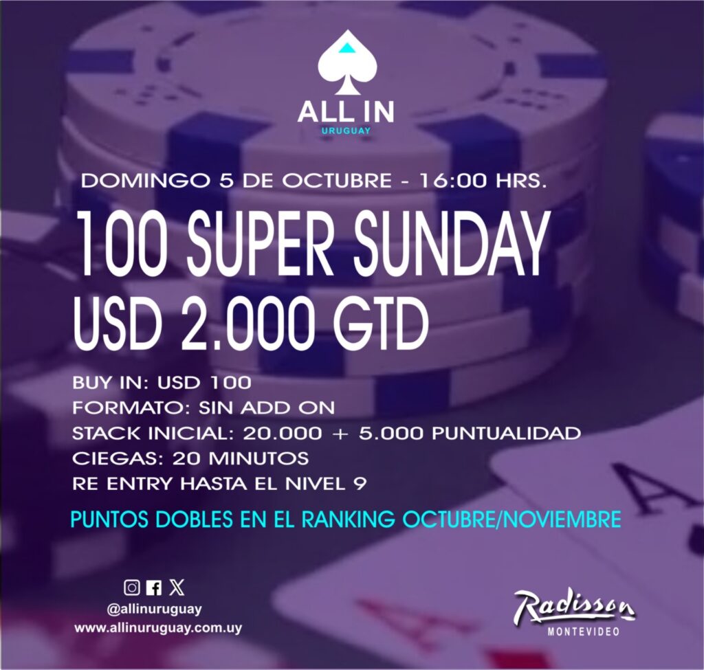 ¿NOS VEMOS ESTE DOMINGO CON PUNTOS DOBLES EN RADISSON MONTEVIDEO PARA LA GRAN FECHA 11? ¡SE VIENE EL 100 SUPER SUNDAY 2K!