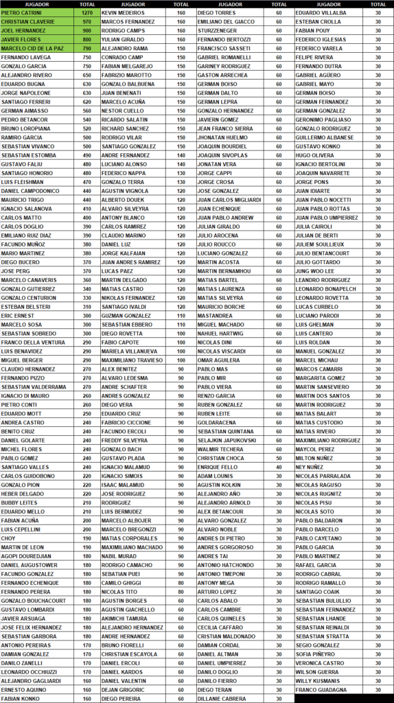 RANKING ESPECIAL ACTUALIZADO RUMBO A LA GRAN FINAL EXCLUSIVA PARA 30 JUGADORES POR EL AUTO 0KM.