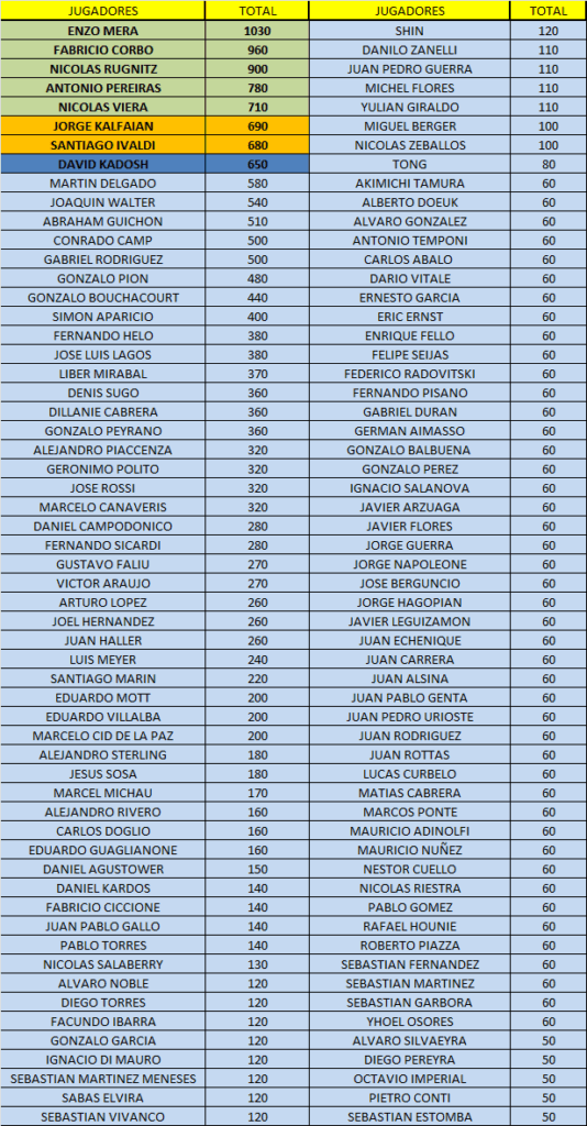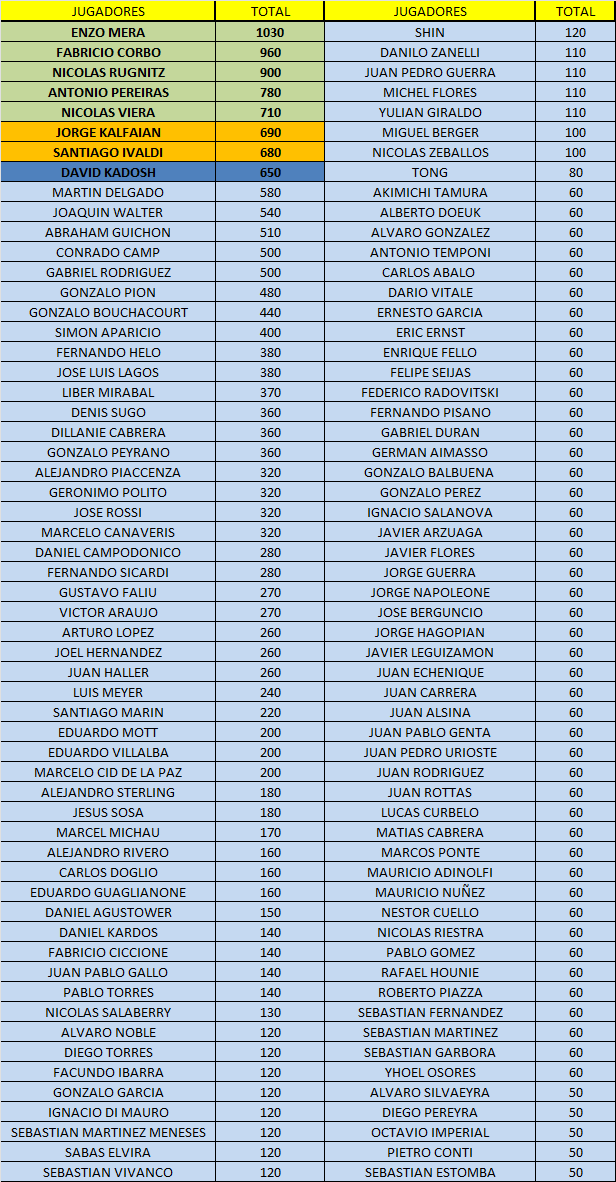 Aun queda mucha tela por cortar, quedan muchos eventos y cada punto cuenta. Setiembre/Octubre clasificaran a los ULTIMOS 5 JUGADORES que completaran la nómina de 30 que jugaran la GRAN FINAL exclusiva y gratuita por 1 Auto 0KM.