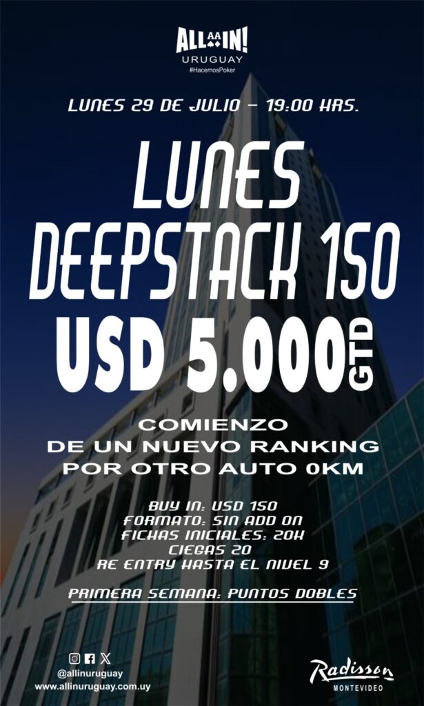 Pero como pasa siempre, y en todos los aspectos de la vida, cuando algo finaliza, algo mejor comienza, y así es como este Lunes 19:00 hrs en Radisson Montevideo, y partiendo desde cero, comenzará el SUPER RANKING ALL IN 2024 con muchisimas sorpresas, pero por sobre todas las cosas, mucho poker.