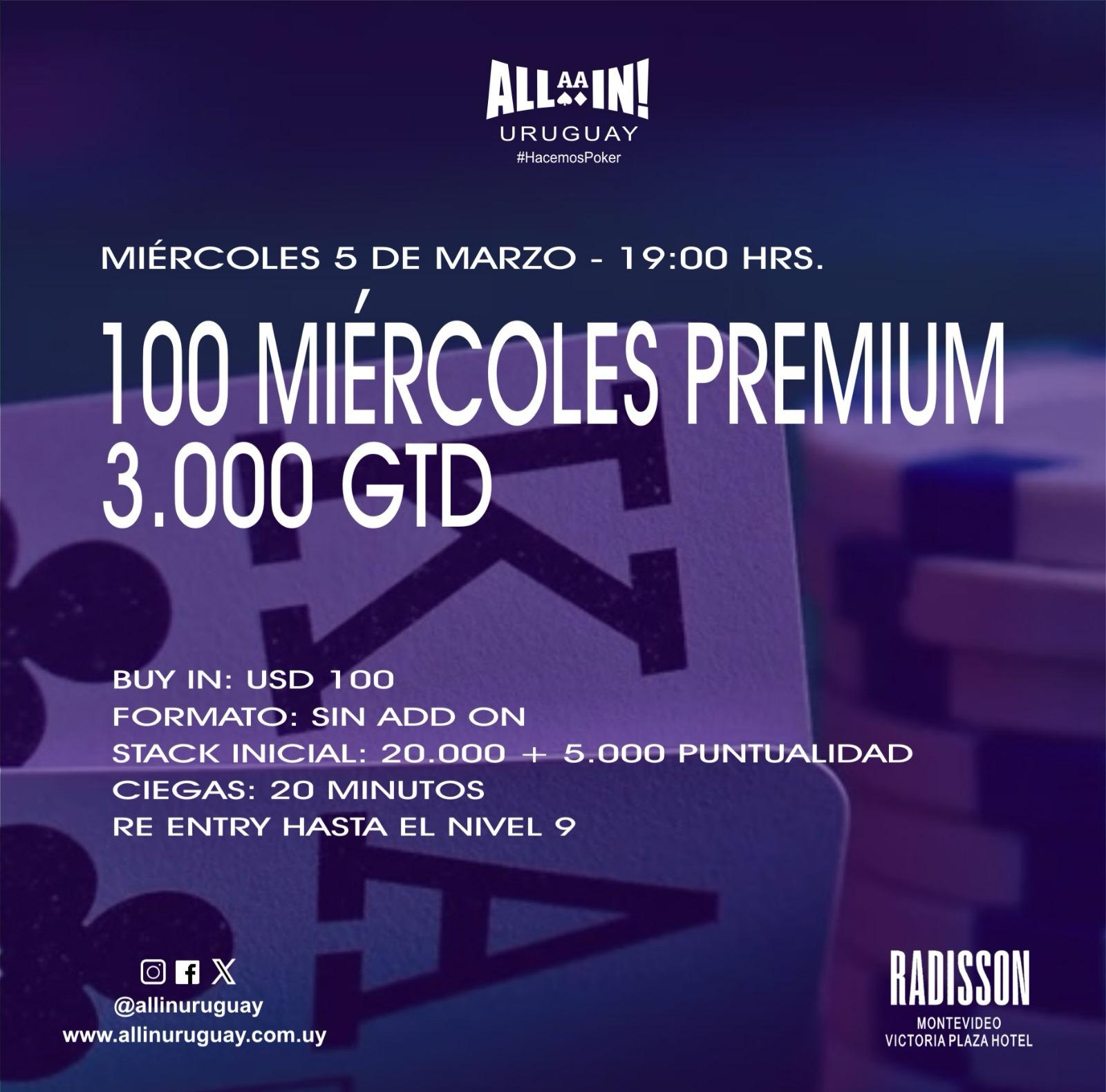 ¡HOY MIERCOLES 19:00 HRS EXPLOTA RADISSON MONTEVIDEO PARA LA DISPUTA DEL 100 MIERCOLES PREMIUM USD 3.000 GARANTIZADOS, FECHA 9 DEL RANKING FEB/MAR QUE ESTA EN LLAMAS!