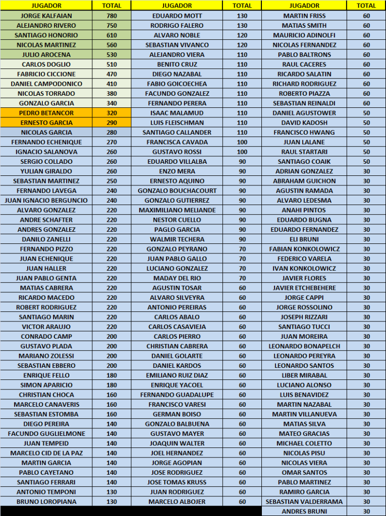 Ya que como dice el reglamento, tanto Alejandro Rivero, como Jorge Kalfaian, como Santiago Honorio, como Nicolas Martinez, y Julio Arocena ya clasificaron por meses anteriores. Por lo tanto, y si este tramo del Ranking terminara hoy, posibilitaría no solo que los 5 obtengan 1 Estrella para utilizar como Stack inicial extra o Re Entry en La Gran Final, sino que se subirían a La Gran Final por el Auto 0KM, FABRICIO CICCIONE, CARLOS DOGLIO, DANIEL CAMPODONICO, NICOLAS TORRADO, Y GONZALO GARCIA.