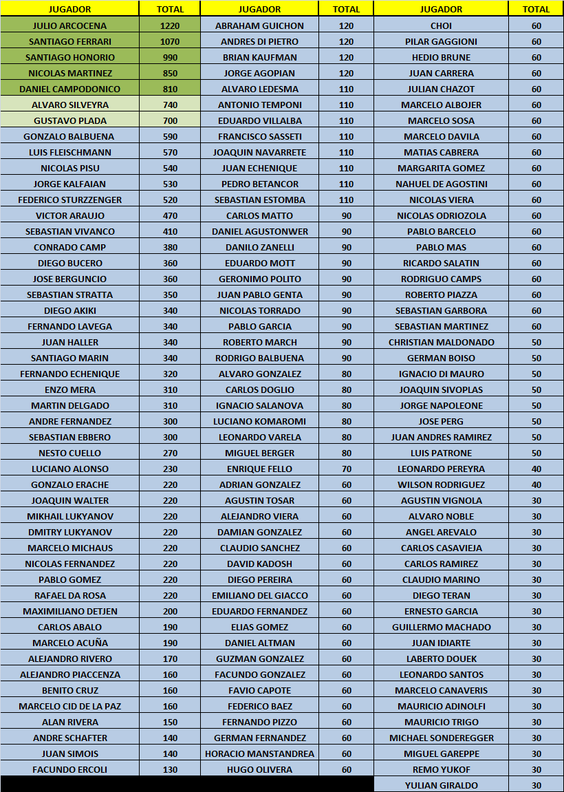 Luego de lo que fue una SEMANA CUP imponente en Radisson Montevideo con un CUP 300 Main Event USD 30.000 GTD que exploto alcanzando las 141 entradas registradas, y un CUP 600 High Roller USD 20.000 GTD que supero ampliamente el pozo asegurado consolidando un eventazo, damos por finalizado el RANKING NOVIEMBRE que catapultó 5 nuevos jugadores a la GRAN FINAL del semestre, gratuita y exclusiva para 30 jugadores, por 1 Auto 0KM.