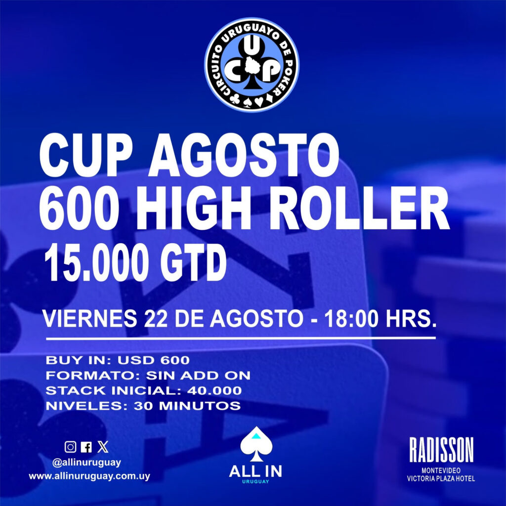Durante los meses de Abril, Mayo, Junio, Julio, Agosto, Setiembre/Octubre se llevará a cabo el RANKING ALL IN 2025. El cual clasificara todos los meses a los 5 jugadores que hayas cosechado más puntos en todos los eventos regulares en Radisson Montevideo inclusive los eventos CUP. Estos últimos, al igual que la primera semana de cada mes, PUNTUARÁ DOBLE.