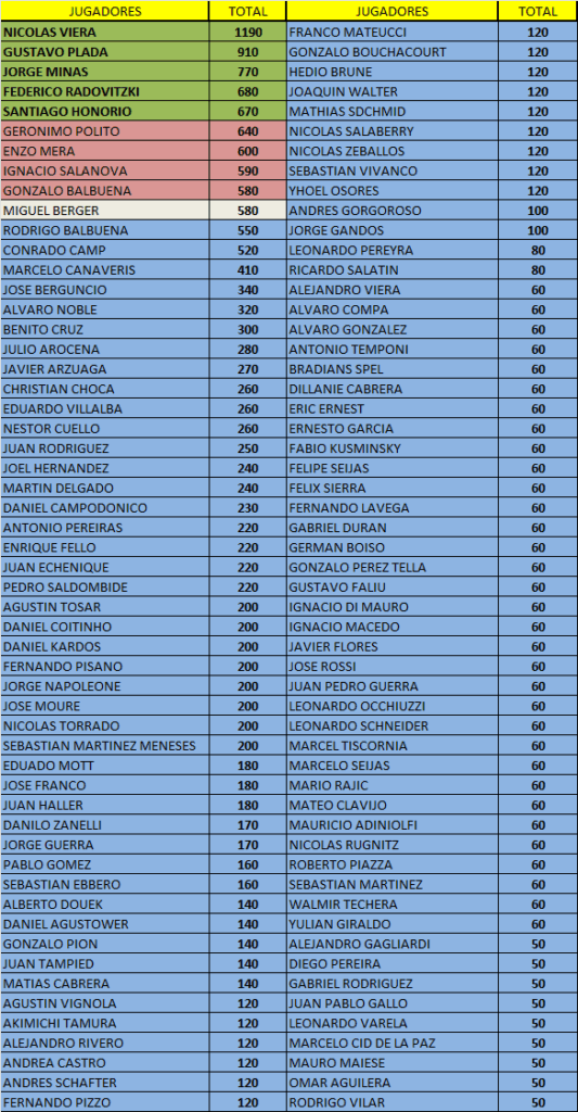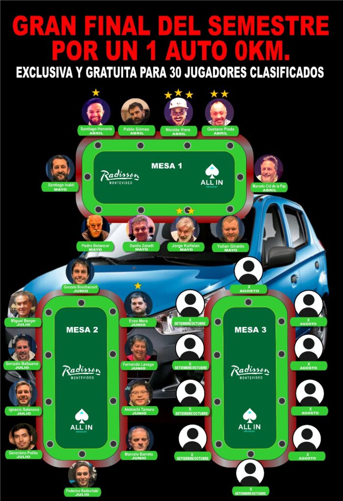 JUGADORES CLASIFICADOS HASTA AHORA A LA GRAN FINAL DE NOVIEMBRE POR 1 AUTO 0KM.