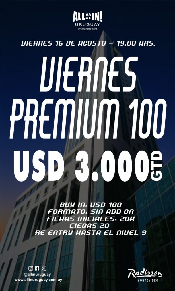 BUY IN: USD 100 – FORMATO: SIN ADD ON